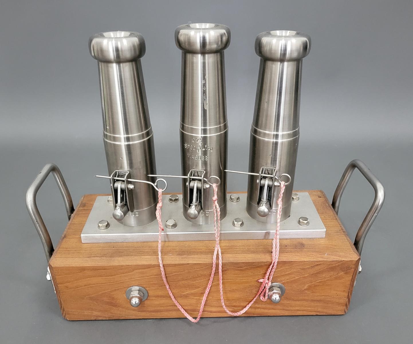 Die Rohre der Böllern sind aus Stahl oder Gusseisen gefertigt und von der zulassenden Behörde wird die maximale Böllerpulver-Menge je Rohr festgelegt. Das Böllerpulver wird in das Rohr geschüttet und von oben mit einem Naturkorken oder Getreidegries bedeckt. Aus sicherer Entfernung wird der Böller dann gezündet und aus dem Böllerpulver entsteht Gas, welches den Korken oder Grieß herausschleudert und dabei den Knall erzeugt. Die alten gusseisernen Böller – auch Katzenköppe genannt - muten mit dem Haltegriff fasst wie ein Bierkrug an. Ein solcher ist auch oben auf dem Bild von 1950 zu sehen. Die neuen Böller sind aus glänzendem Edelstahl gefertigt und zu dritt auf einem Holzbalken befestigt.