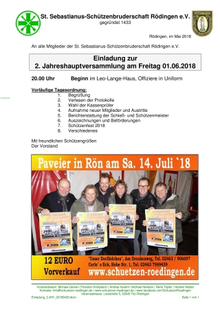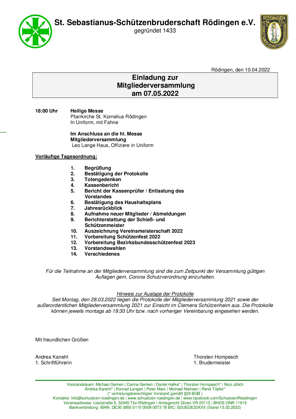 gekrönt. Wir freuen uns auf viele uniformierte Teilnehmer.