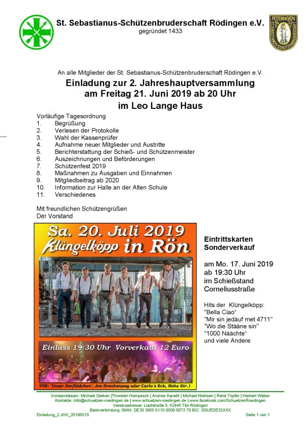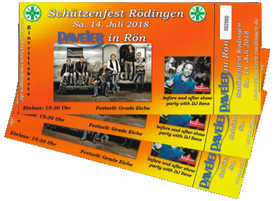 Auch Eintrittskarten für Schützenfest Samstag " Paveier in Rön" werden verkauft