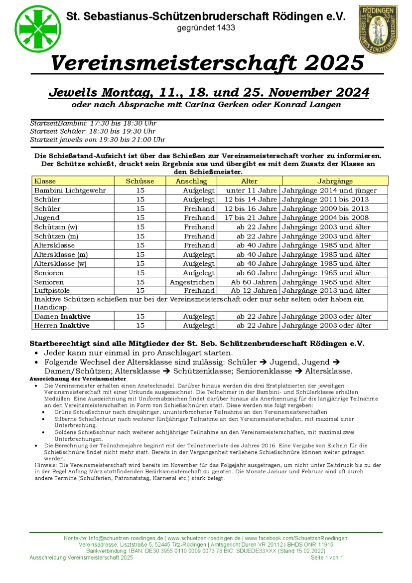14:00 Uhr Beginn auf dem Schießstand, in Uniform Mit Günther-Josten-Wanderpokal und