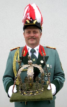 Schon beim Pfingstschießen wurde es gemunkelt und es bestätigte sich beim Aufruf zum Königsschuss: Peter Marx war der Bewerber! Es genoss das Schießen und holte mit dem 91 Schuss unter dem Jubel der vielen Zuschauer den Vogel herunter.