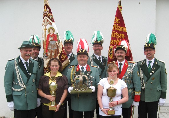 22.05.2008 Familientag und Königschießen Der Tag der Sebastianer begann am Morgen mit der Feier der Fronleichnamsmesse im Ortsteils Müntz. Das Geleit des Allerheiligsten ist eine Ehrenaufgabe der Schützenbruderschaft. Zurück am Schießstand in Rödingen wurde sich gestärkt mit Grillfleisch, Softeis, Getränke und Cafeteria. Die Hüpfburg wurde von den Kinder wie immer zum Austoben genutzt und die Jungendlichen und Erwachsenen übten sich beim Preisvogelschießen.