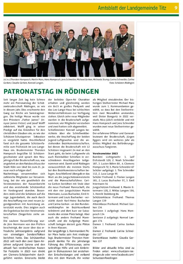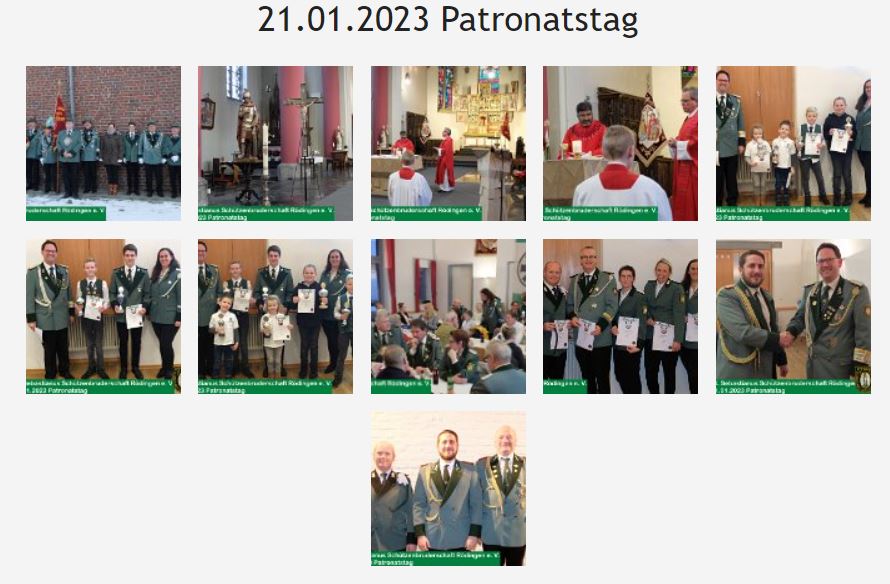 21.01.2023 Patronatstag der Bruderschaft gehe zu 21.01.2023 Bezirks- und Diözesan-Meisterschaften gehe zu 08.09.2023 Familientag an Fronleichnam gehe zu 09.06.2023 Mitgliederversammlung gehe zu 22.06.2023 Spende von 200 € für den Kindergarten St. Kornelius gehe zu 14. - 17. Juli 2023 Schützenfest: Königin Carina regiert die Sommerparty bei den Schützen in Rödingen gehe zu September Bundesmeisterschaft 2023 gehe zu 29.09.2023_Siegerehrung_Cornelius-Pokalschießen gehe zu 24.09.2023 BHDS-Bezirksverband Jülich ermittelt neue Majestäten! gehe zu 19.11.2023 Volkstrauertag gehe zu 24.11.2023 Krönungsmesse Bezirksmajestäten und Herbstdelegiertentagung gehe zu 26.11.2023 Totensonntag gehe zu 06.12.2023 Adventsgruß der Schützen Rödingen im Altenheim Hasselsweiler gehe zu 10.12.2023 Empfang der Heimatpreise für 2022 und 2023 gehe zu 24.12.2023 Gruß zu Weihnachten und Jahreswechsel gehe zu
