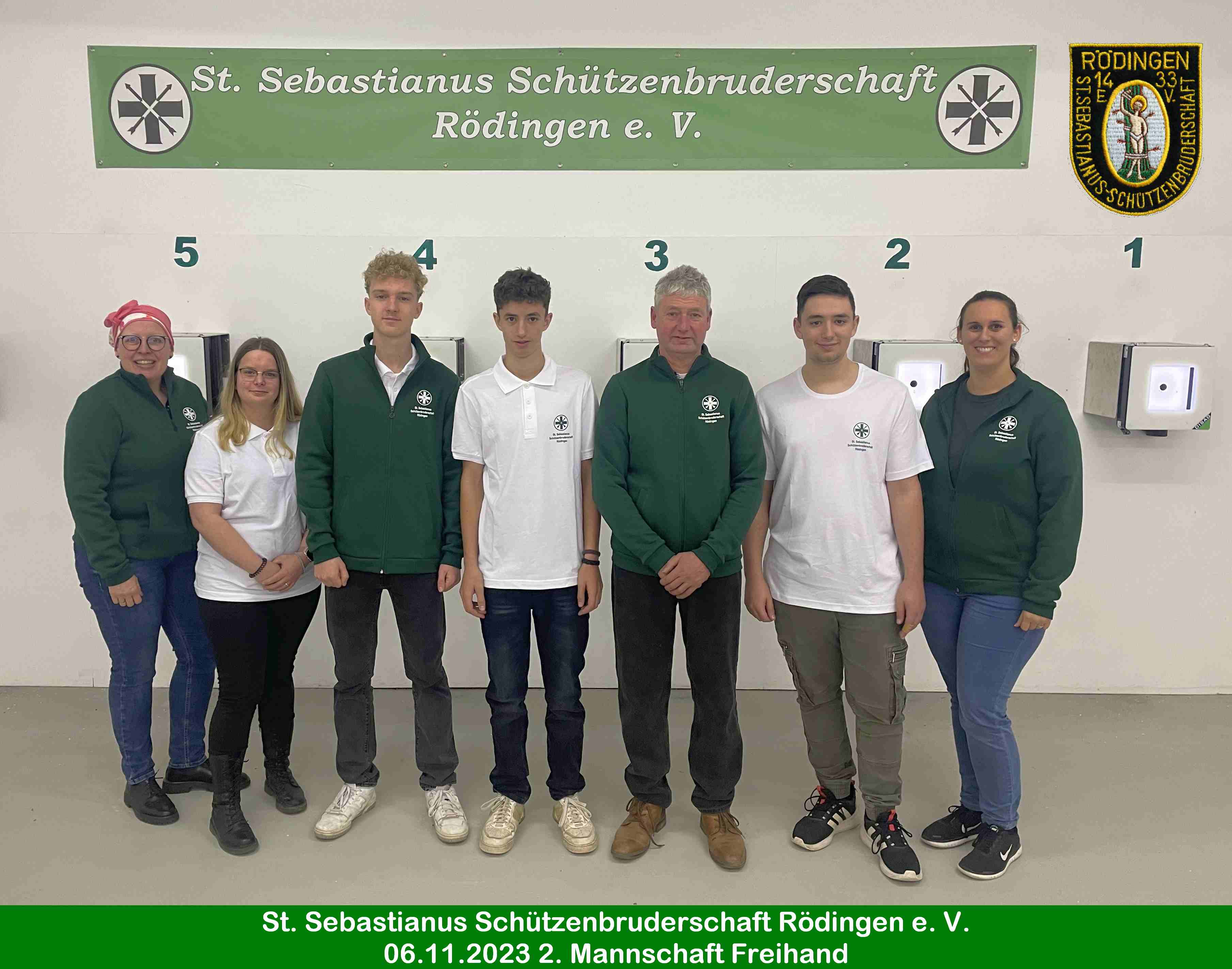 2. Mannschaft freihand in der Saison 2023-2024: Freihand-Klasse LG im Bereich des BHDS Jülich Veronika Sieben, Vivian Zabel, Maxim Ittermann, Emil Ittermann, Karl-Hans Buchacker, Louis Buchacker, Carina Gerken (Mannschaftsführerin: info@schuetzen-reodingen.de)