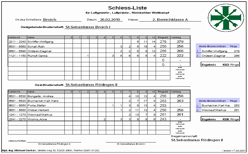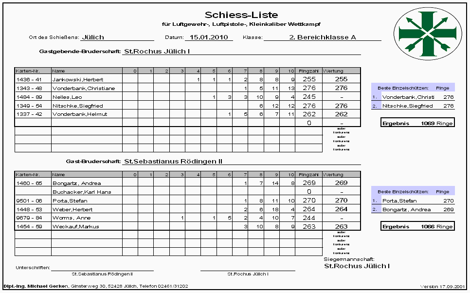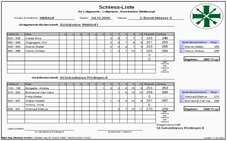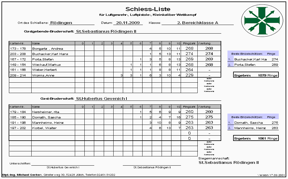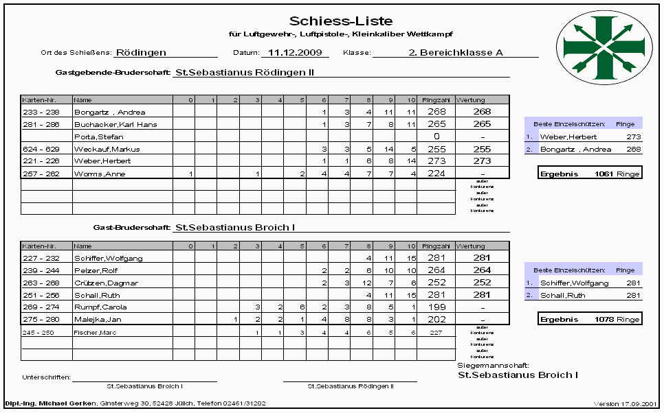 Herbert Weber (Mannschaftsführer Telefon 02463/8865 + 0160/96 07 68 84 )
