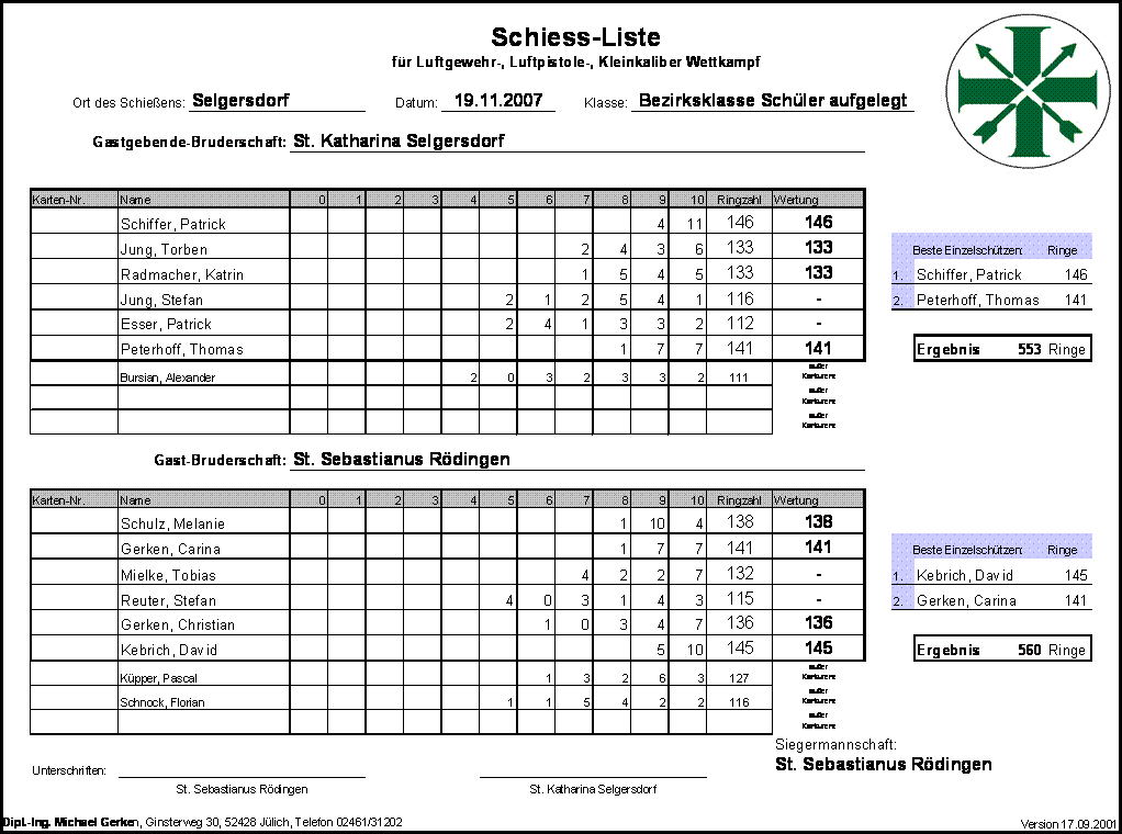 553 : 523 St. Seb. Rödingen III Titz 572 : 563 Mo 11.02.08