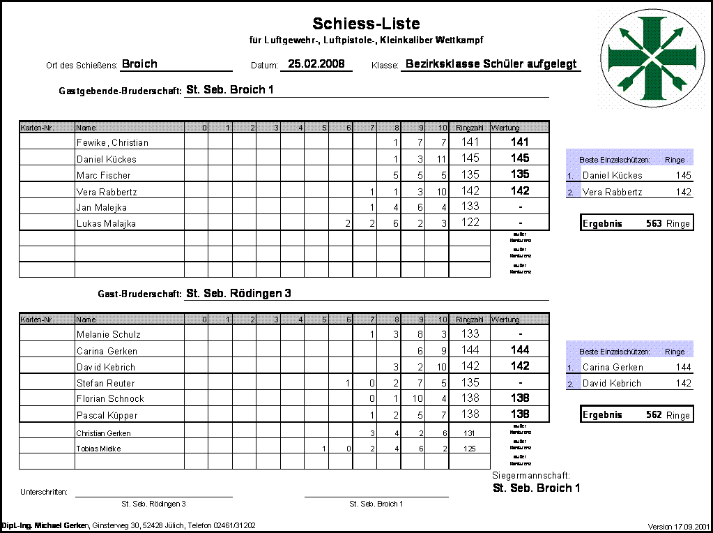 555 : 537 St. Seb. Rödingen III Hoengen 567 : 557 Mo 14.01.08