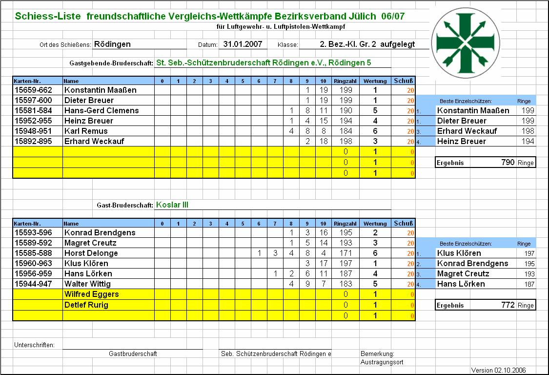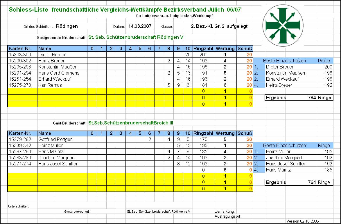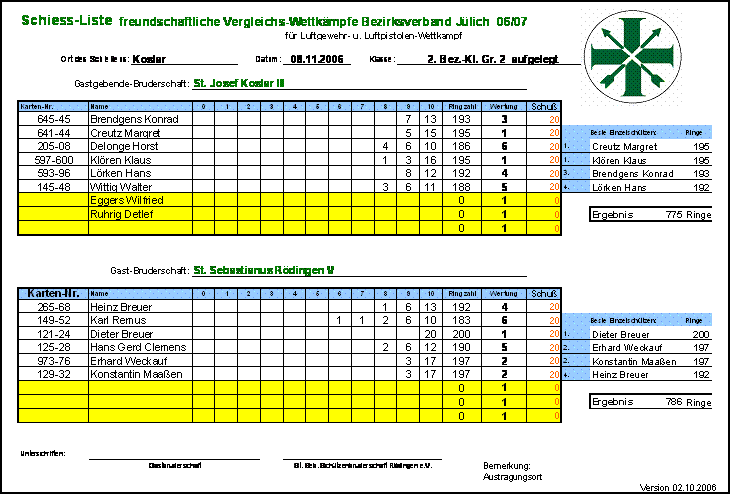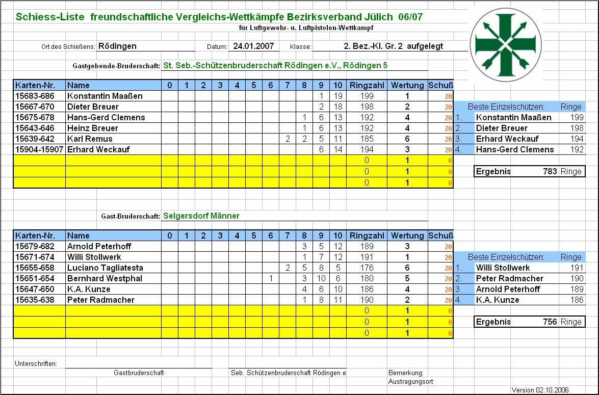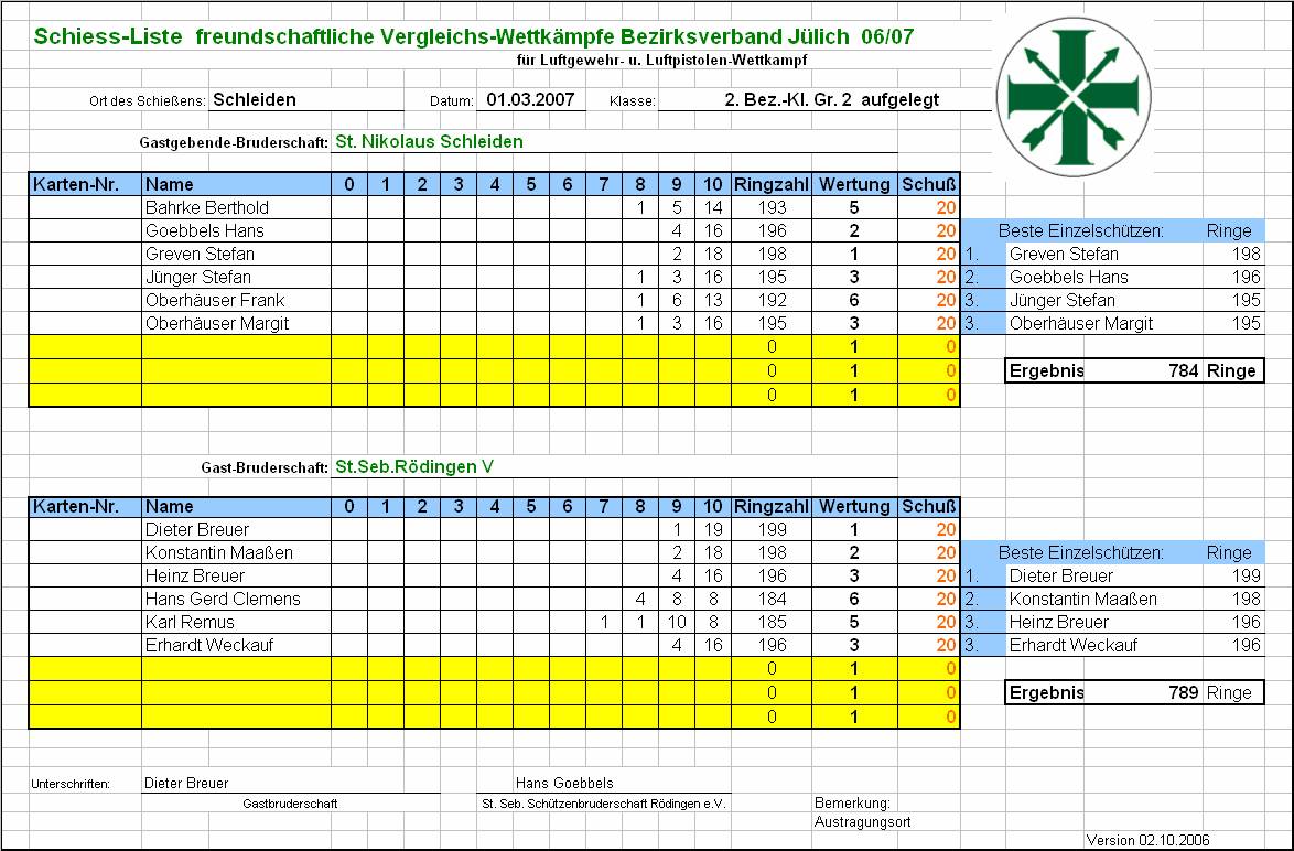 Wettkampübersicht 2006/2007 2. Bezirksklasse Jülich aufgelegt Gruppe B Dieter Breuer