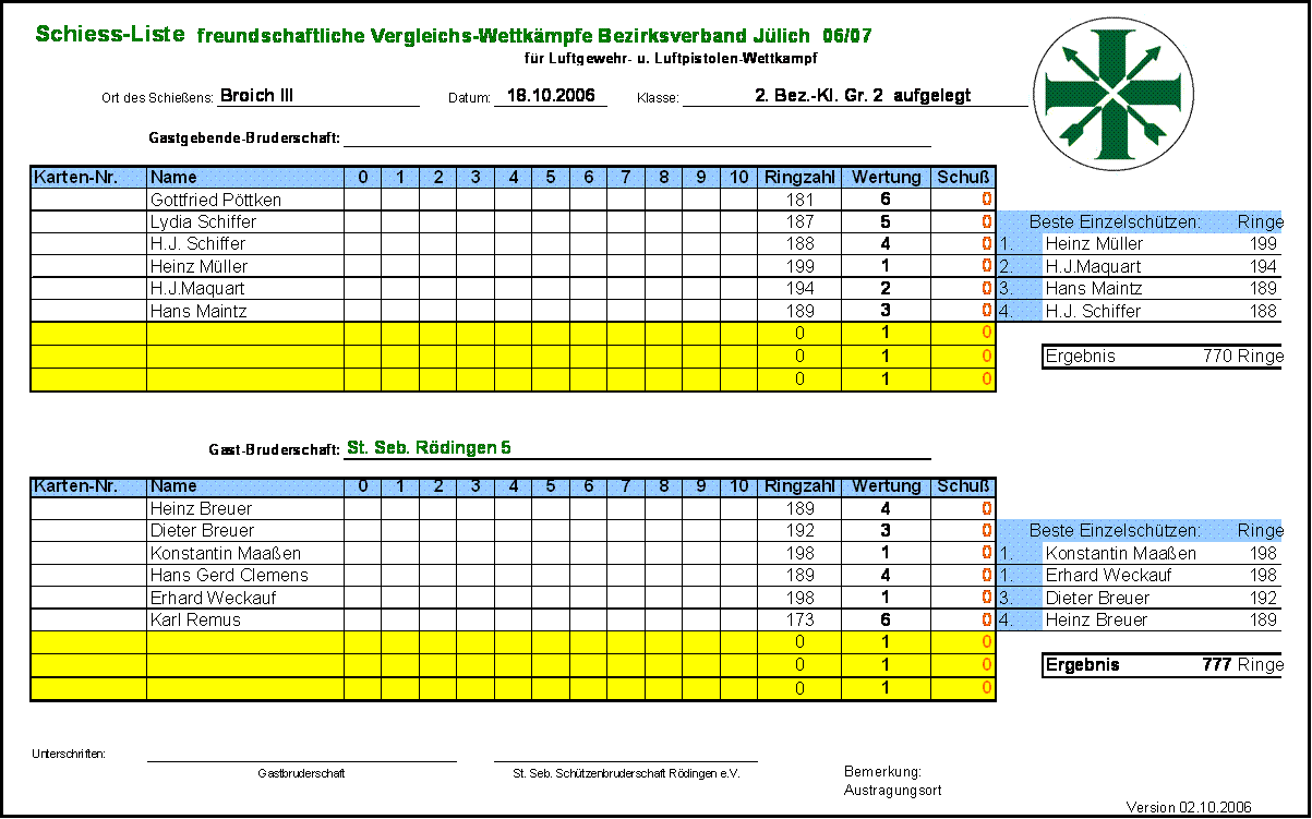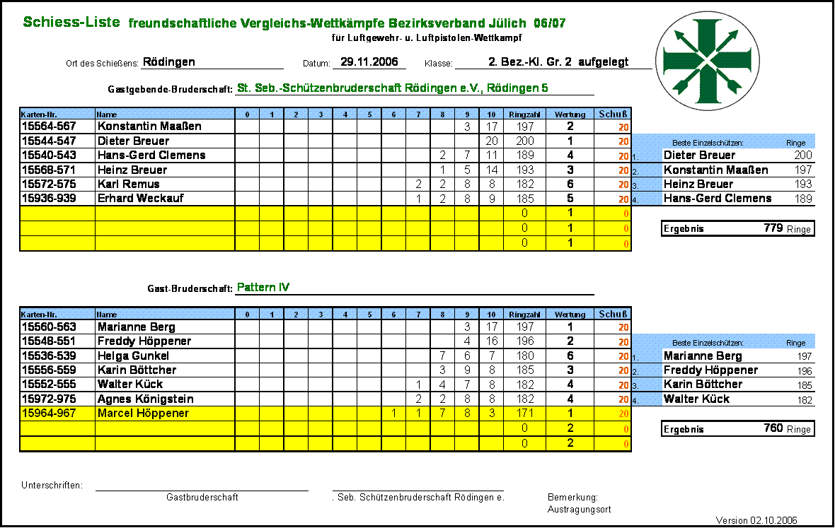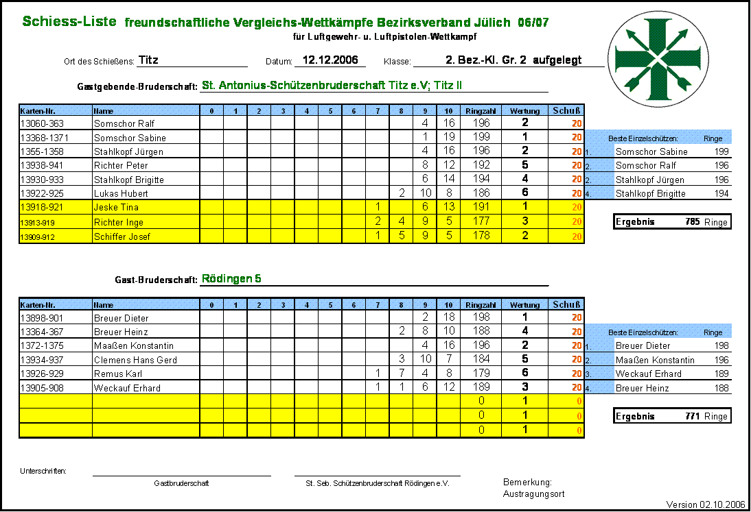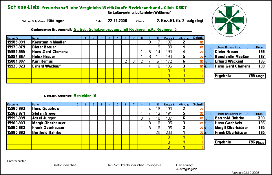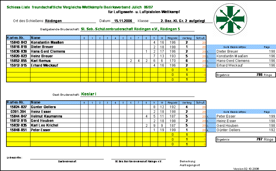 Wettkampübersicht 2006/2007 2. Bezirksklasse Jülich aufgelegt Gruppe B Dieter Breuer